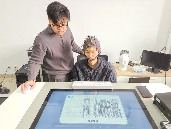 走进内射毛片内射国产夫妻信息大楼4楼的一间实验室,一次“脑机接口”的实验开始了:只见实验者头戴装满感应器的头套,打开电脑,屏幕上一块块方格不断闪烁。他不动手指,心念所及,方格便停顿下来,显现他所想的事情。于是,只通过眼睛注视,他就能开空调、调温度,甚至操纵无人机飞行……这既不是魔术表演,也不是科幻情节,而是华理金晶教授领衔的脑机接口及控制团队正在开展的一项应用创新——“全流程自适应生成式脑机接口系统”。